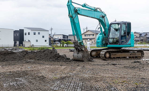 土木工事では、地盤の整備や側溝の設置をはじめ、インフラを整備する工事に携わっていただきます。 大型機械を使用する場面もございますが、先輩社員が基礎から指導いたしますのでご安心ください。