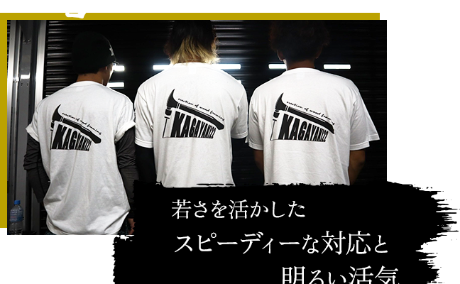 高齢化が進んでいるこの業界に活気をもたらすため、現在当方では20代前半の従業員が活躍しています。