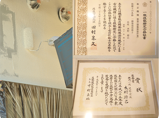 当方の施工は、一級塗装技能士の代表をはじめ、経験豊富な職人が担当いたします。