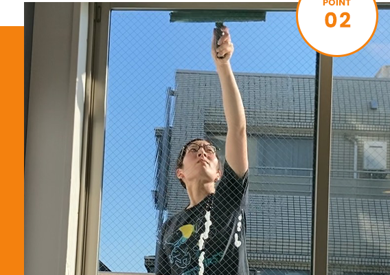 流れ作業のように決められたことをただ行うのではなく、対応する物件の状態にあわせて適切な清掃を行うことを常に心がけています。