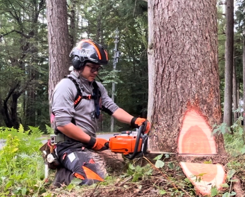 特殊な技術で木を登り、どのような場所でも対応できる『アーボリスト』が作業いたします。