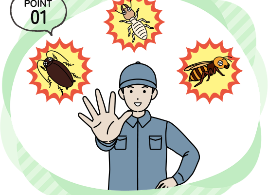 代表は業界歴20年以上の害虫駆除・害獣駆除のプロです。これまで培ってきた知識と技術を活かし、さまざまな特性を持つ虫や動物たちへの対応を行います。今後も繰り返し同じような被害が起きてしまわないように、侵入経路を防ぐだけではなく、もしもの際のアドバイスも行います。