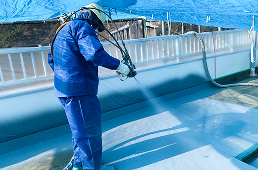 当社は静岡県でまだ取り扱いが少ない、超速硬化ウレタン「クイックスプレー」を使用した防水工事を行います。